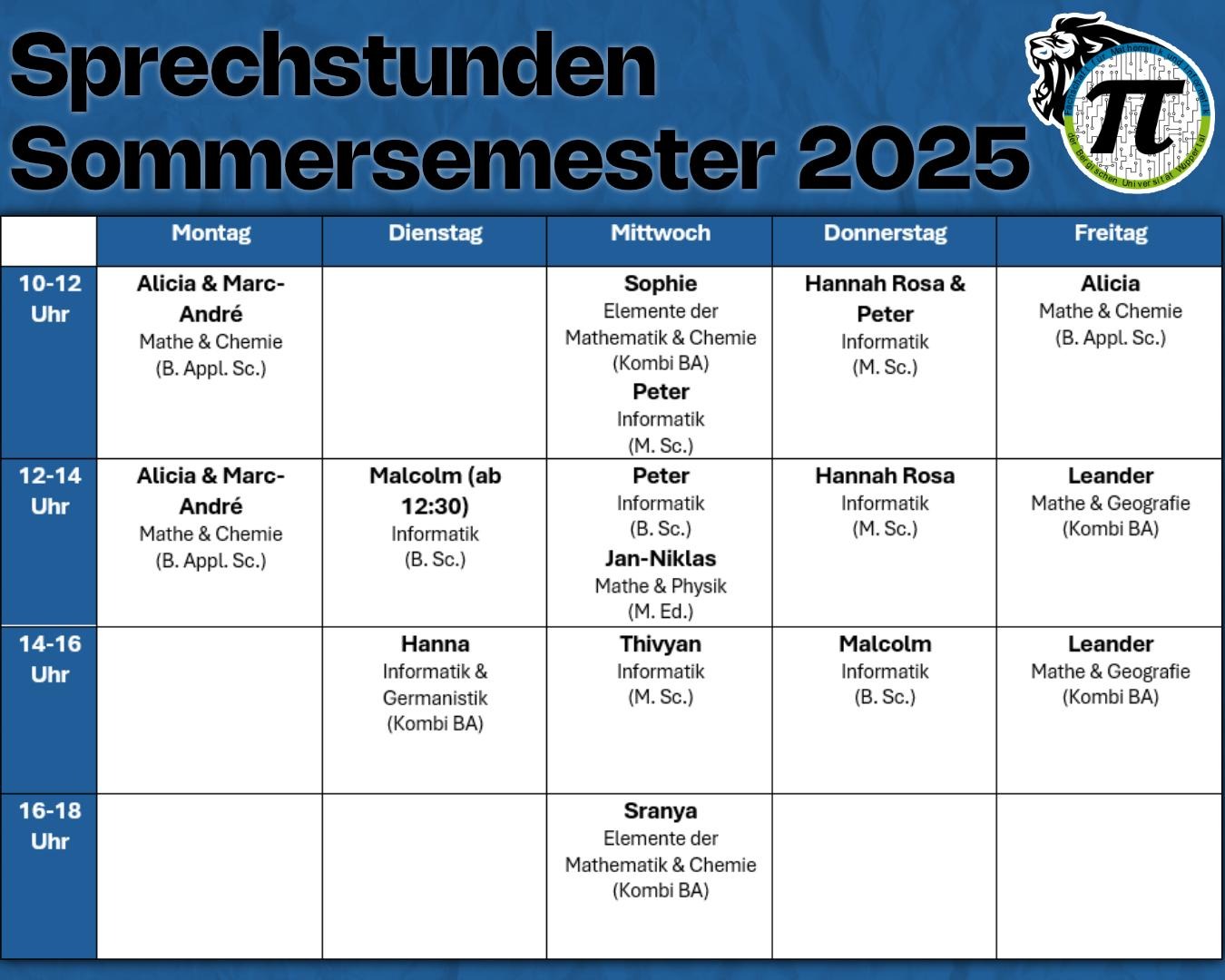 Du hast Fragen rund ums Studium? Dann komm gerne in unsere Fachschaftssprechstunden! ✨️