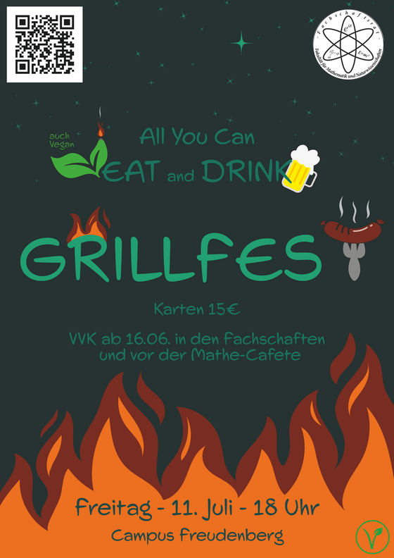 Es ist wieder soweit. Am 11.07 findet unser jährliches Grillfest am Campus Freudenberg statt. Von 18 Uhr bis in die Nacht erwarten euch Musik, Essen und Zutrinken. Auch für Veganer und Vegetarier ist gesorgt.