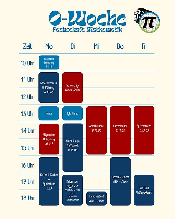 Blau = Events der Mathe/Info-Fachschaft