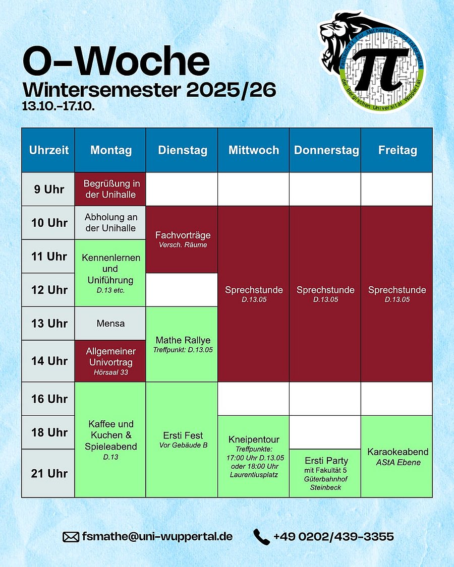 Rot = Studienrelevante Veranstaltungen der Mathe/Info-Fachschaft